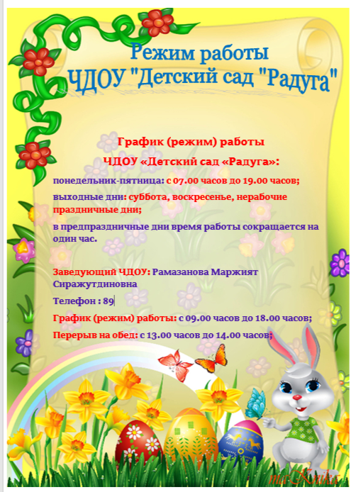 Заведующий ЧДОУ: Рамазанова Маржият Сиражутдиновна